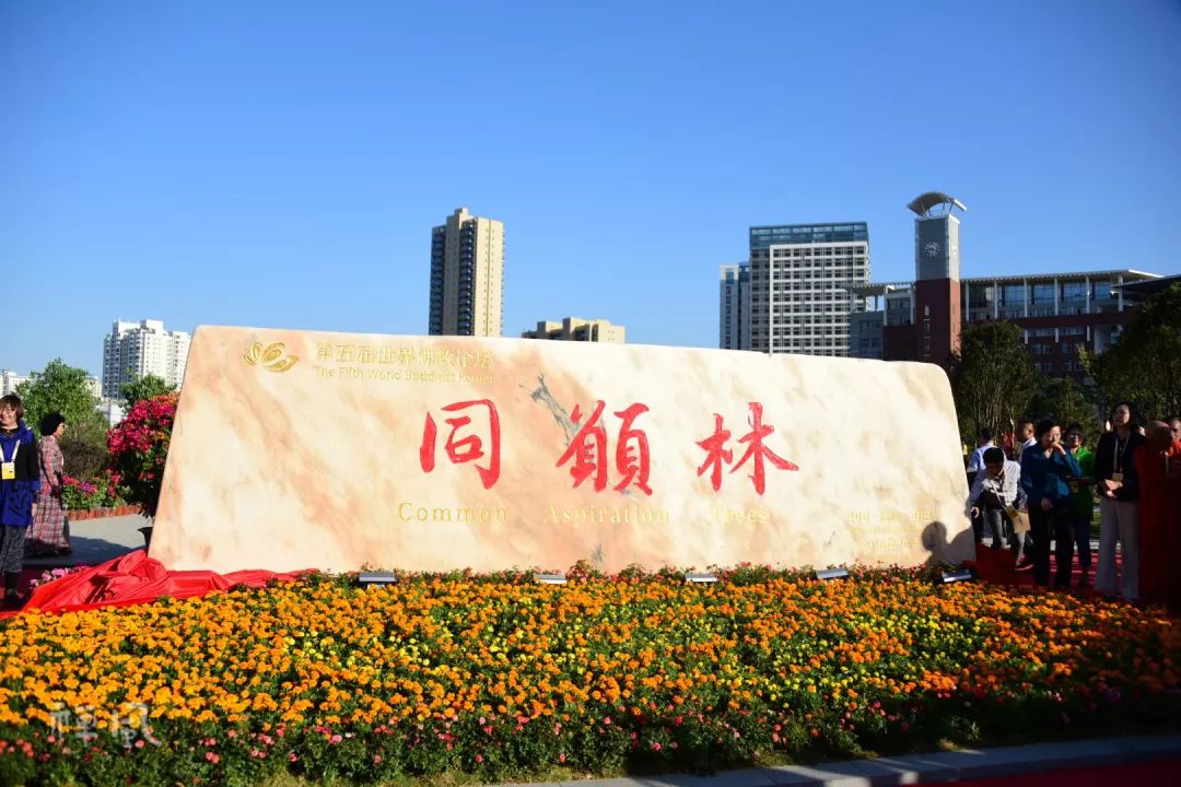 同种罗汉松,共许恒久愿。本届世界佛教论坛的一大亮点是南湖公园种植“同愿林”活动暨“同愿林”纪念碑揭幕仪式。10月28日下午,200多位海内外高僧大德、领导嘉宾出席现场揭幕仪式。