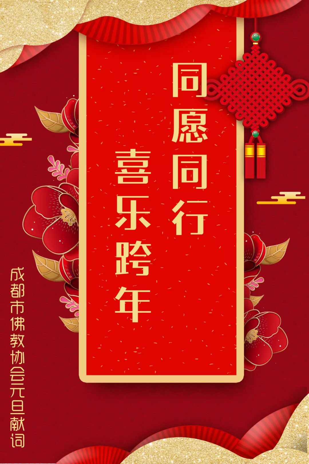 不忘初心,同愿同行。当日历翻开新的一页,我们迎来了崭新的一年,在这辞旧迎新的美好时刻,宗性会长及全体会领导班子成员谨代表成都市佛教协会,向全市佛教界和社会各界人士致以新年的祝福和诚挚的问候,祝大家新年快乐、阖家幸福、吉祥如意!向关心和支持佛教事业发展的各界人士表示衷心的感谢!