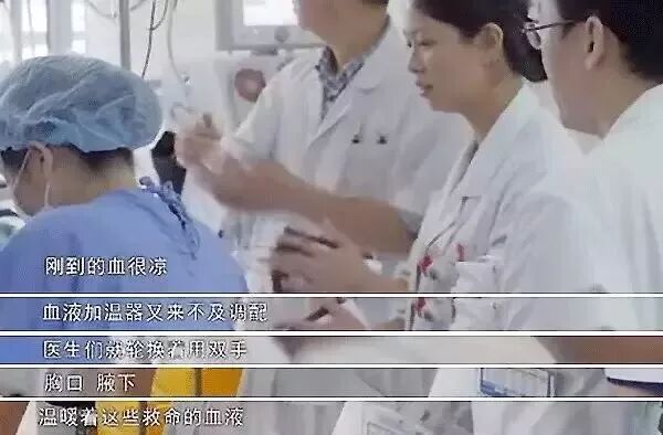 病人体内的病情因为血液透析而好转,但是却出现了应激反应,溃疡出血。从血库紧急调来的血液是冰冷的,设备升温来不及,医生们甚至以自己的体温来加热血包,然后为病人输血。