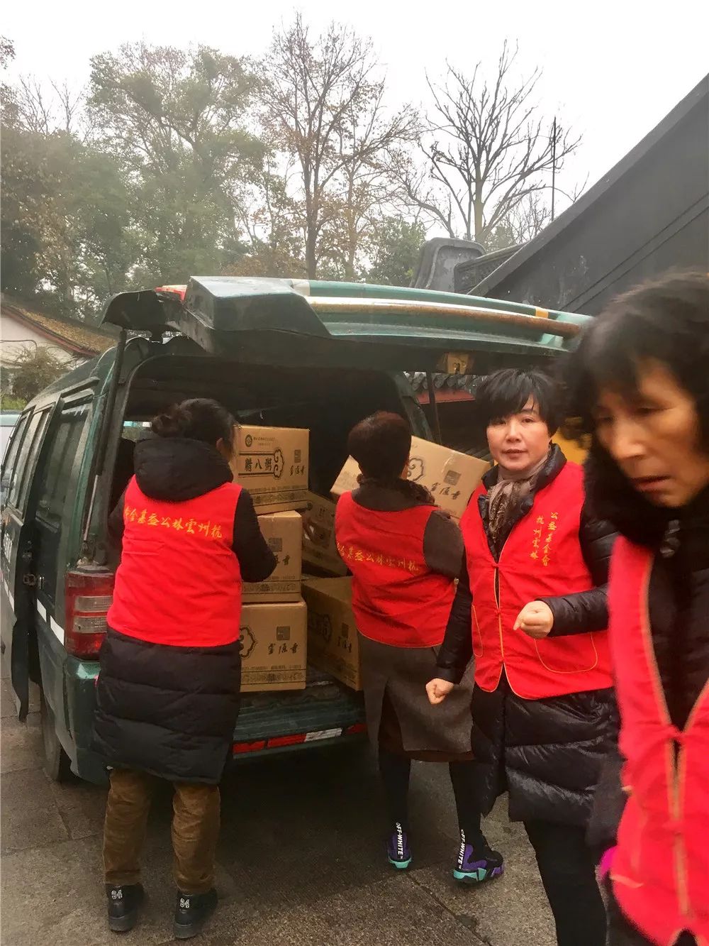 8点30分,志愿者的车辆载运着3024份腊八粥,兵分三路,来到杭城各个慈善福利机构。