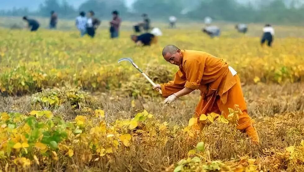 在世间,小孩子读书会学到李绅的诗:“锄禾日当午,汗滴禾下土。谁知盘中餐,粒粒皆辛苦。”这只是停留在表面的层次上,我们学佛的人还要观想到更深的一层。