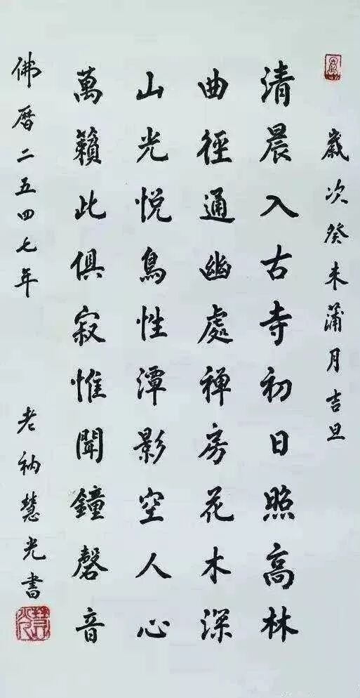 为什么人们会如此熟悉“慧光长老”这个名字呢?传净长老喜欢写书法,也雅擅书法。在他的书法作品中,常常以“慧光”二字作为落款。