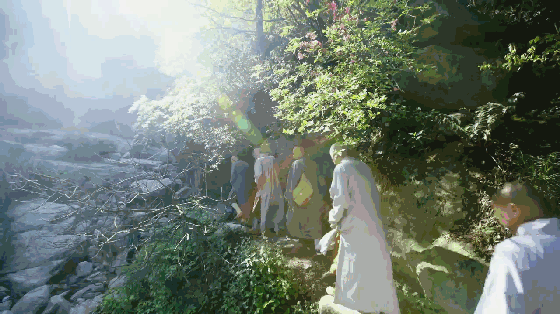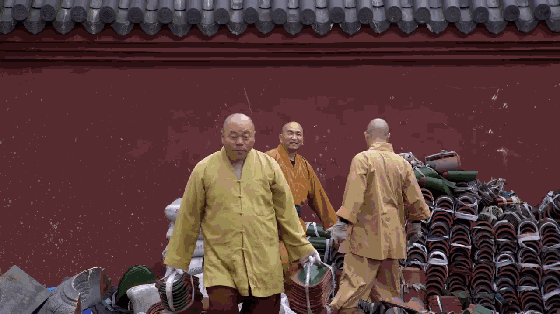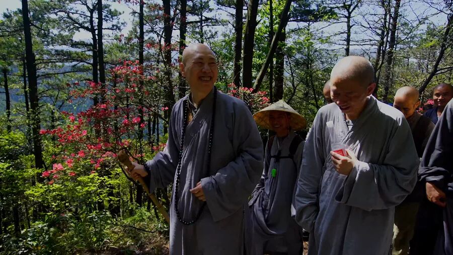 一群僧人在山林间穿梭