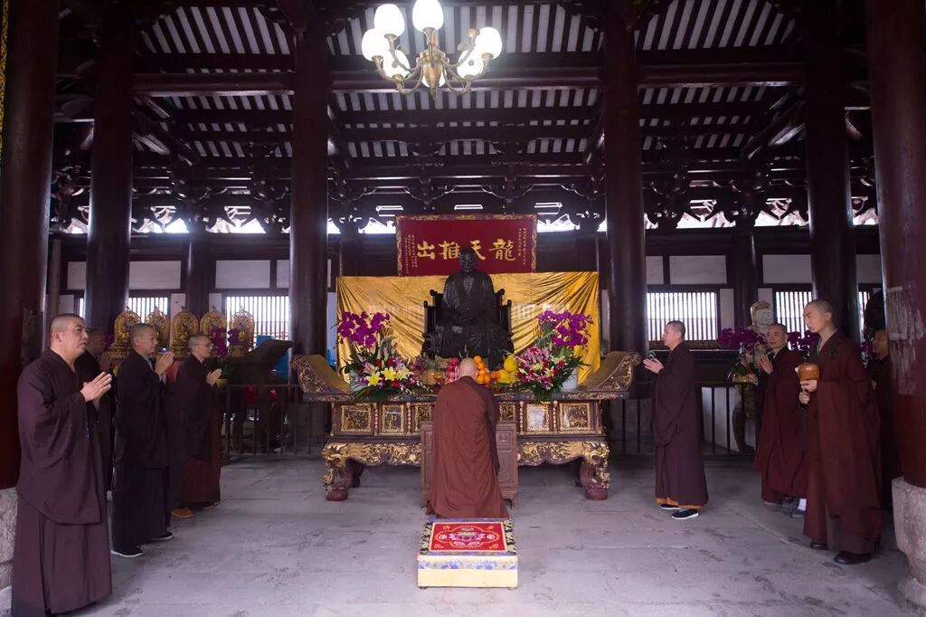 惠能大师遂说明身份,并应印宗法师之请,拿出衣钵给大家看。印宗法师欢喜赞叹,便集合大众在法性寺菩提树下,为惠能大师剃度,并请法师为他授具足戒。