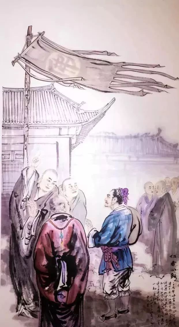 大家了十分诧异,便将他请到寺中。惠能大师便与印宗法师有一番交谈,印宗法师说:“久闻黄梅衣法南来,莫非就是行者?”