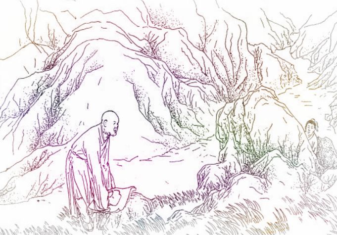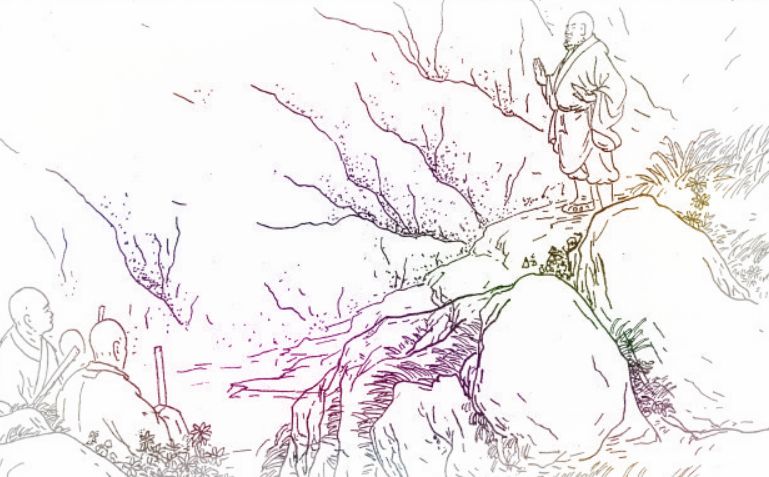 惠能大师这时从草丛里走出来,趺坐在石头上为惠明说法。惠明似有所悟,礼拜惠能大师为师。