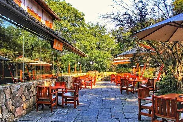 永福寺的半山腰就是福泉茶院,是座两层的仿古建筑,视野极佳。在茶院之中,便能将郁郁葱葱的绿山尽收眼底,令人心旷神怡。