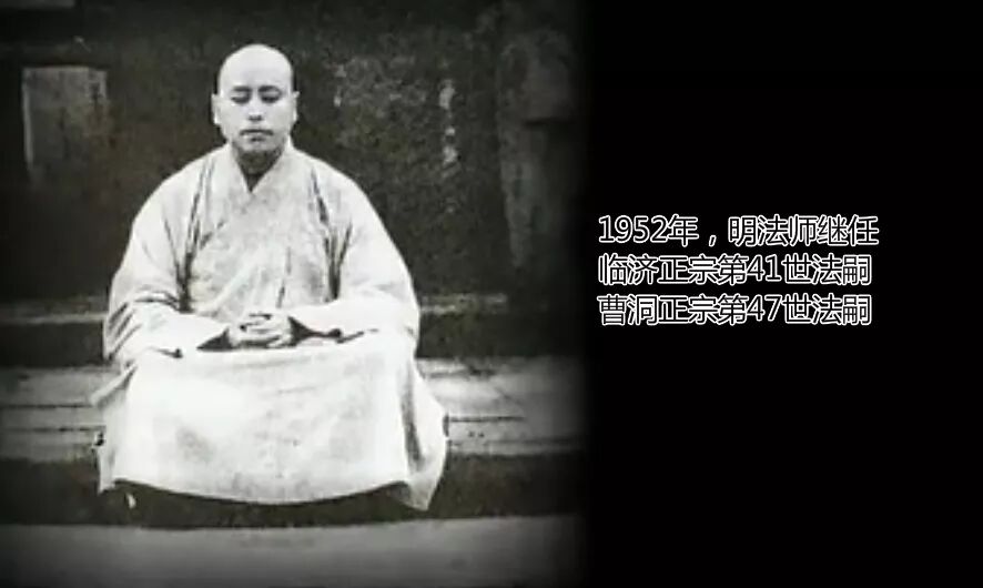 1952年底,圆瑛大师向明旸法师亲传心印法门,明旸法师继任临济正宗第41世法嗣和曹洞正宗第47世法嗣。