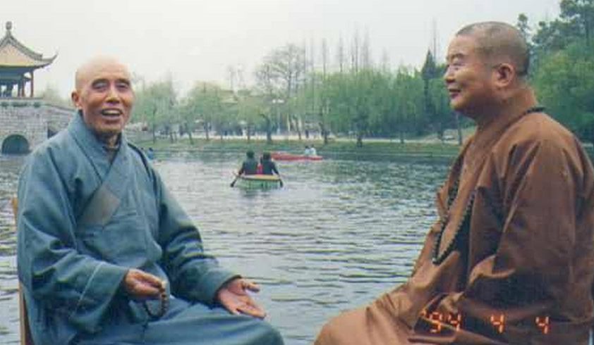 西园寺明开法师(左)与赵朴老(右)