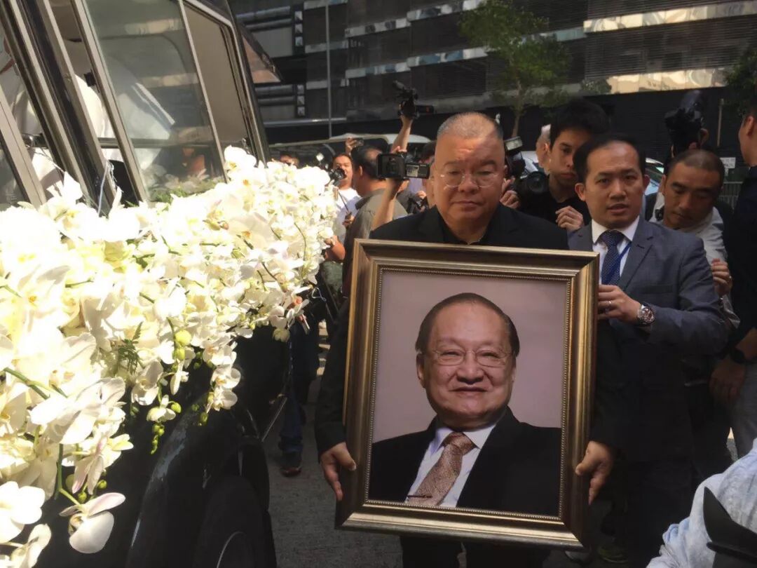出殡仪式上金庸次子查传倜手捧父亲遗像
