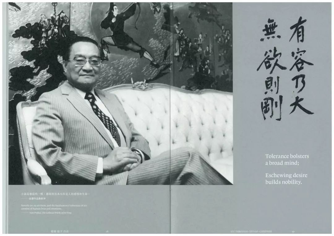 从《书剑恩仇录》探讨的民族大义,儿女情长,到射雕三部曲,关于人的成长与侠义精神的探索,再到《天龙八部》等书里流露的悲天悯人,最后以《鹿鼎记》的洒脱圆融封笔,金庸先生的十八年创作历程,也是他的心路历程。