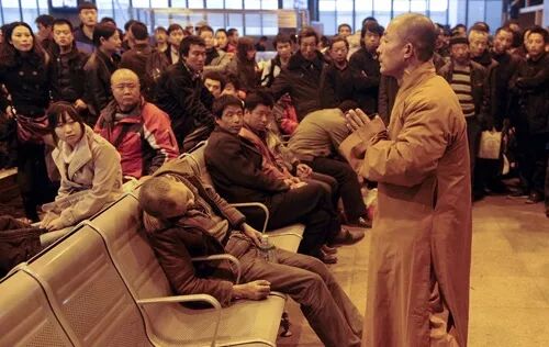 火车站里涌入了越来越多人,嘈杂声也越来越大,却没有一个人走近这位法师。人们自发地为他们留出了一个清净的空间。