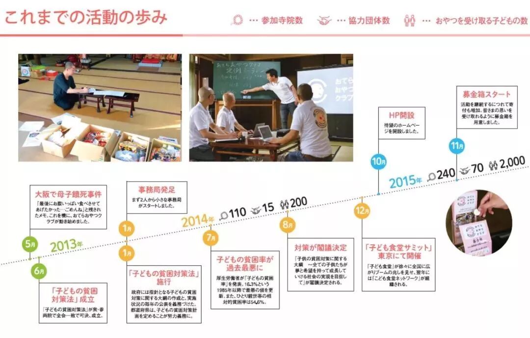 松岛靖朗原本只是想做点自己能做的,没想到的是,这个理念一经推行,很快就得到了大量居民的支持,并促使不少寺庙加入这个工作的行列。于是,“寺庙零食俱乐部”应运而生。
