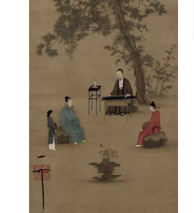 徽宗(1082-1135)对花抚琴图(现存故宫博物院)