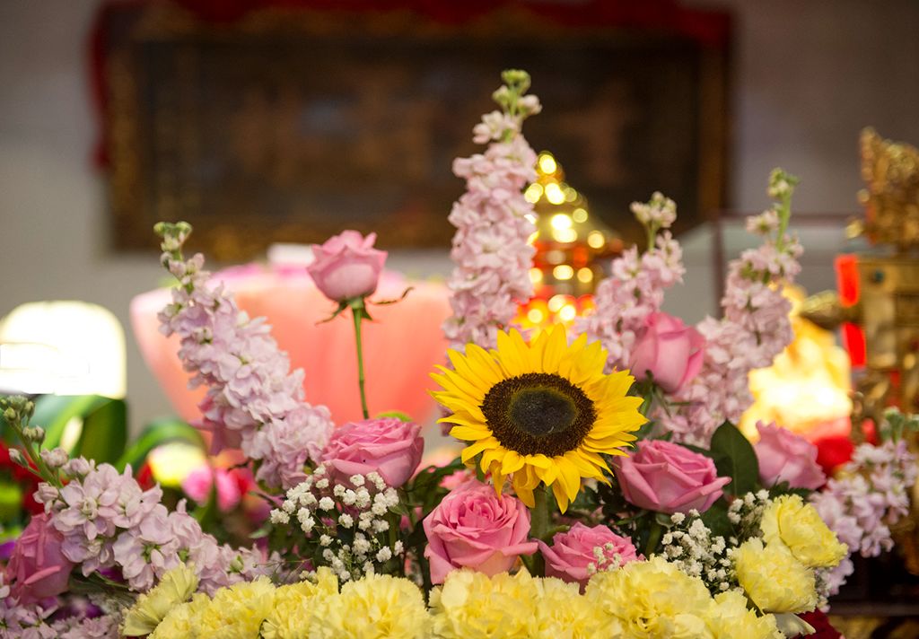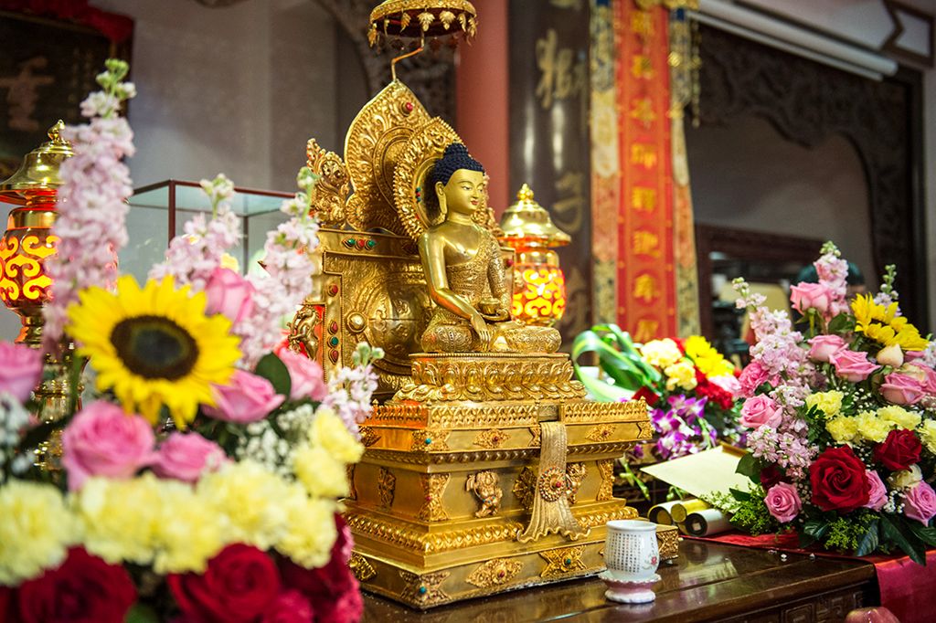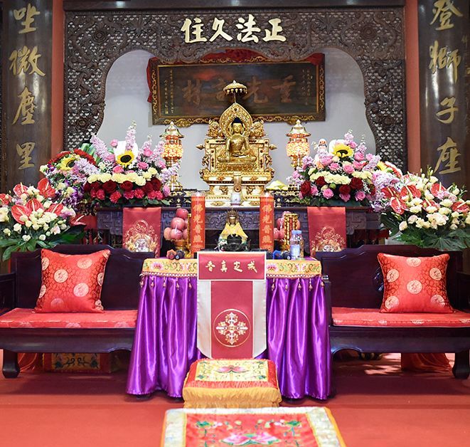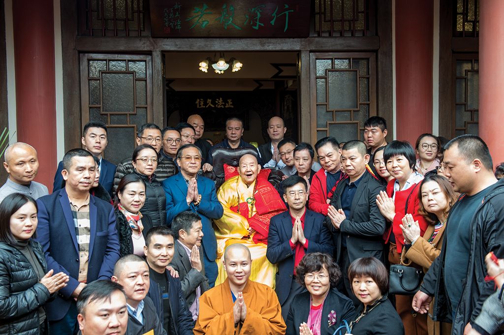 此次寿诞有不少弟子赶来拜寿,长老也如往年那样在会客厅进行了简单的布置。有徒弟敬献了一尊释迦牟尼佛圣像,新成长老便率徒众举行了一场开光法会,并对大家作了简单的开示。