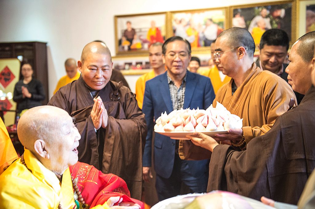 一场温馨的寿诞聚会,是长老的德行感召,是弟子们对师父恭敬孝顺之情的流露,也让所有的佛弟子感受到三宝的慈悲摄受。