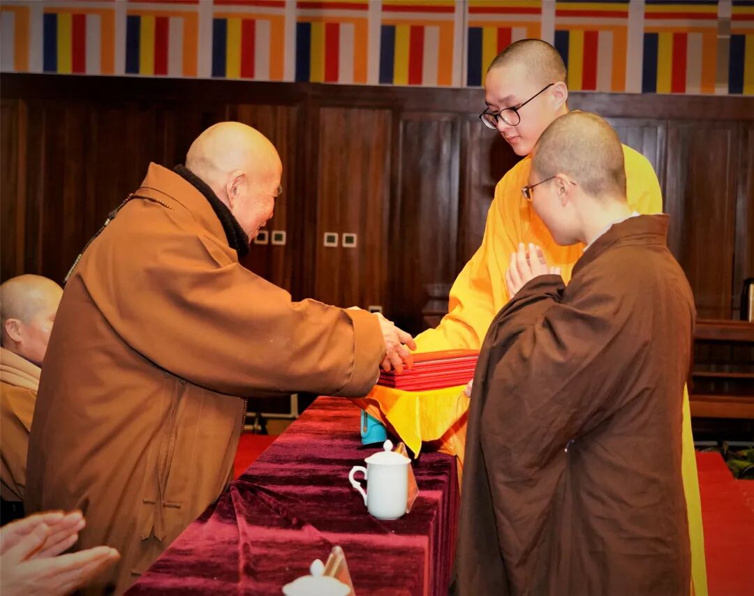 光泉院长表达了对学僧的殷切期许。他说杭州佛学院办学目标是:努力打造一所集僧伽教育、艺术教育、讲经说法、学术研究、佛教管理、对外交流等为一体的综合性佛教院校。在培养政治上靠得住、宗教上有造诣、品德上能服众、关键时起作用的中青年佛教僧才发挥了重要作用。