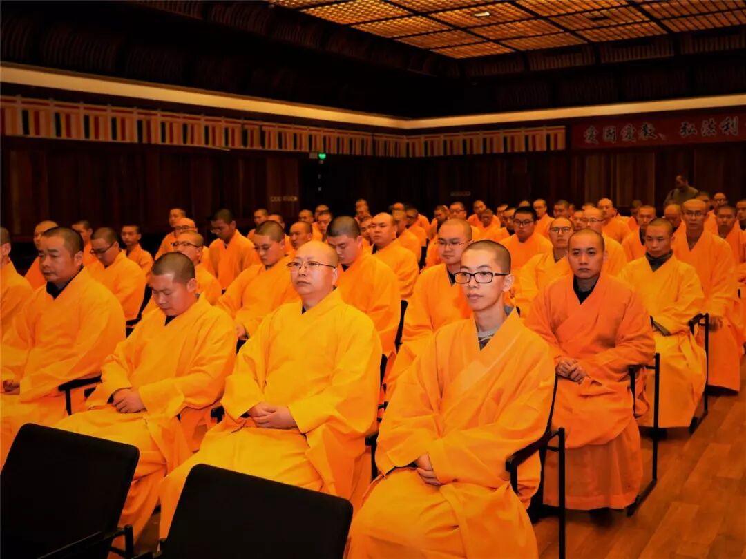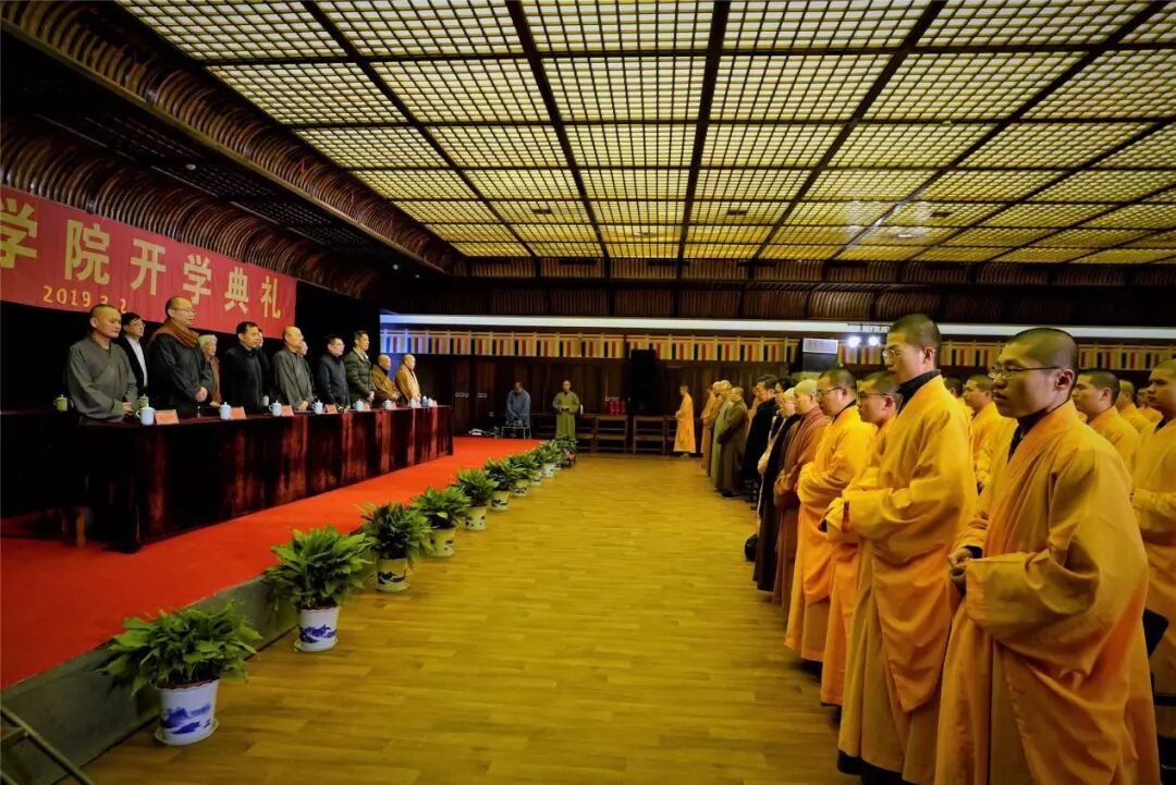 参加典礼的还有杭州佛学院院长助理纪佩珍老师、黄征老师、席挺军老师和佛学院授课法师、教职员工及全体学僧约一百六十人。 杭州佛学院院长光泉法师向参加开学典礼的领导、嘉宾致以诚挚的新春问候!向多年来关心和支持杭州佛学院建设和教学工作的各级领导、大德法师、教职员工、护法居士以及社会各界朋友表示真诚的感谢!向2019届新入学的学僧致以美好的祝愿!