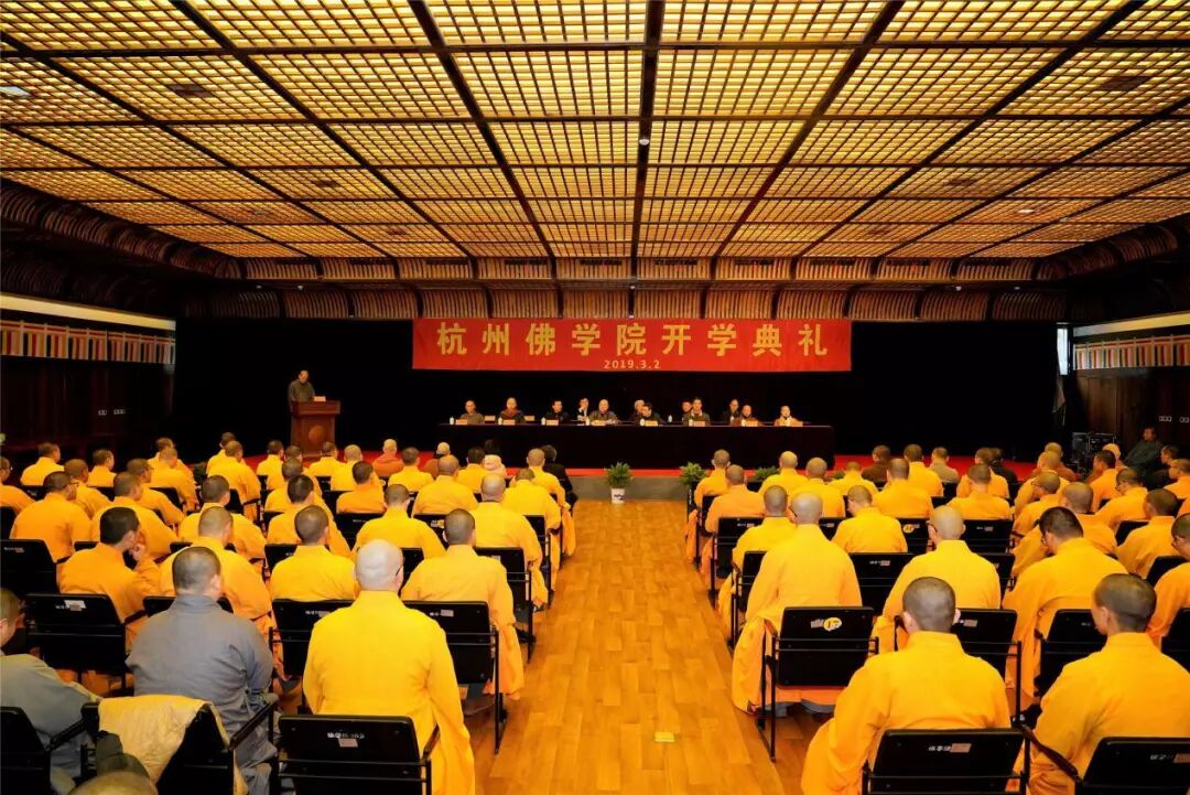 好雨知时节,当春乃发生。2019年3月2日(农历正月二十六上午),杭州佛学院2019年开学典礼在法云校区禅堂举行。 浙江省民族宗教事务委员会副主任莫幸福;省民族宗教事务委员会三处调研员金幸祥;杭州市民族宗教事务局宗教处处长胡胜军;中国佛教协会副秘书长、杭州市佛教协会会长、杭州灵隐寺方丈、杭州佛学院院长光泉法师;上天竺法喜讲寺方丈定本法师;杭州市佛教协会副会长、杭州佛学院副院长、三天竺法镜讲寺住持智圆法师;永福寺方丈念顺法师;杭州灵隐寺监院、杭州佛学院副院长觉恒法师和灵顺寺监院恒康法师、法净禅寺乘达法师、南山讲寺监院昌乐法师等参加开学典礼。