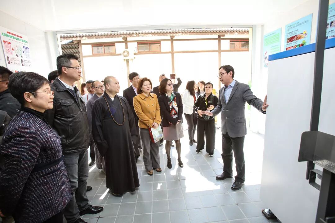 中国佛教协会副会长、本寺方丈觉醒大和尚首先致辞,热烈欢迎市人大侨民宗委、外事委副主任委员宋妍,市民宗局副局长杜宇平,市政协民宗委专职副主任徐梅,普陀区委统战部长黄海平,市国保局副局长王季强,以及市委统战部、普陀区民宗办、长寿路街道等领导莅临指导,玉佛禅寺全体法师、职工、皈依信众和觉群志工代表等参加了此次活动。动员会上,觉醒大和尚表示,垃圾分类工作做得好不好,是衡量创建文明和谐寺观教堂和健康卫生单位质量水平的重要指标,希望全寺各部门能够以本次动员大会为契机,认真重视垃圾分类工作的重要意义,积极参与文明和谐寺观教堂及健康寺院的创建活动,为玉佛禅寺的各项事业再上新台阶作出应有的贡献。随后,普陀区绿化和市容管理局党组副书记舒乐炎,市民宗局副局长杜宇平等相继致辞,对玉佛禅寺垃圾分类方面所作出的工作和实践表示肯定和支持。最后,上海市人大侨民宗委、外事委副主任委员宋妍宣布上海玉佛禅寺生活垃圾分类工作正式启动。动员大会结束后,与会的领导嘉宾还一同参观了玉佛禅寺垃圾房的建设情况。为了加强上海市生活垃圾管理,改善人居环境,促进城市精细化管理,保护生态环境,保障经济社会可持续发展,2019年1月31日,上海市第十五届二次人代会高票通过了《上海市生活垃圾管理条例》,并将于7月1日正式施行。垃圾分类作为生态文明建设的具体举措,不仅关系到城市环境的改善、城市文明程度的提升和居民生活质量的提高,也是各宗教弘扬优良传统、践行现代生态文明理念的自觉行动和生动实践。上海玉佛禅寺作为全国重点寺院,一直秉承着“觉悟群生,奉献社会”的理念,以弘扬正法、净化人心、服务社会为己任,同时注重对生态环境的保护,近年来举行了多种形式的慈善公益活动,以实际行动参与和支持生态文明建设。上海玉佛禅寺积极响应政府的垃圾分类政策,以实际行动落实垃圾分类,也是切实承担起宗教界“两个责任”的具体表现。