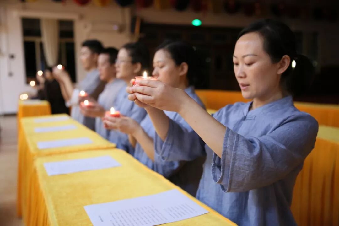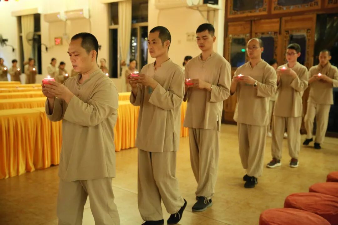 禅修期间,学员们欢喜受持“八关斋戒”,早课念诵《心经》《劝发菩提心文》,在法师指导下开展慈心禅和正念禅的训练,举行密集的坐禅、站禅、行禅,瑜珈,聆听佛学讲座,出坡清洁公共卫生,按佛教仪轨参与过堂,还参与了极具六榕特色传灯祈愿仪式,禅修课程设计周密、内容丰富,学员和法工们都在这次禅修中受益非浅。