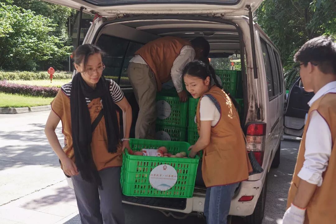 ▲志工们将水蜜桃分发至福利院各个房间