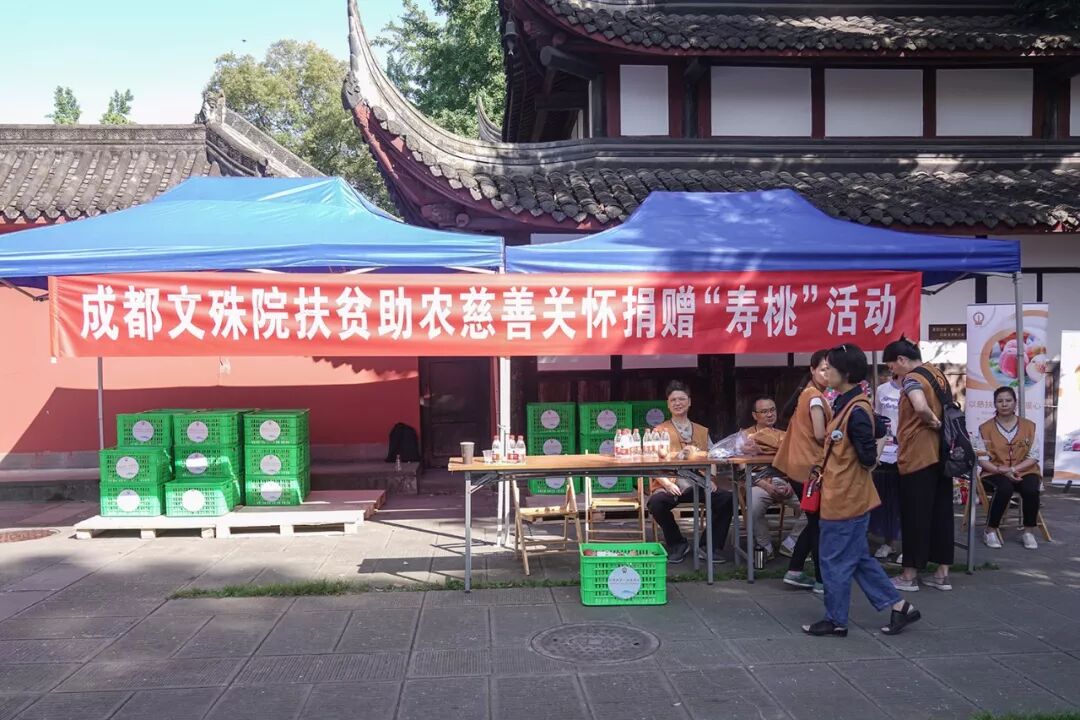 文殊院扶贫助农慈善关怀捐赠“寿桃”活动,努力践行“以慈善回报社会”的慈善理念,及“日行一善 善行一生”的慈善倡议,通过号召社会各界人士爱心捐赠,对简阳市云林村平西乡施行对口扶贫,帮助当地的“阳春玉桃”进行爱心认捐,助力当地108户困难户走上脱贫之路。(文 字 |巍 然 妙 知 图 片 |传媒中心)