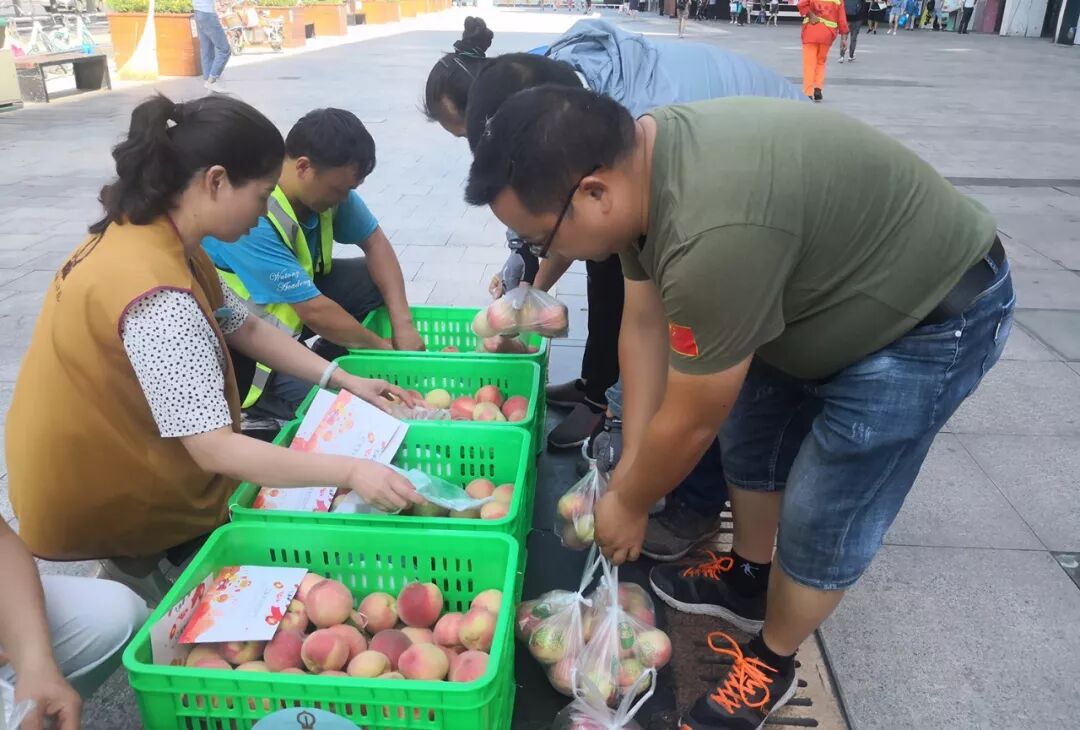 ▲为草市街街道办事处环卫公司工人准备水蜜桃