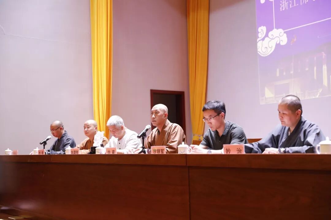 6月21日下午,浙江佛学院全体师生齐聚知行楼阶梯教室参加2019届预科班毕业典礼,奉化区委统战部副部长、区民宗局局长范银军应邀出席,浙江省佛教协会会长、浙江佛学院院长怡藏大和尚,顾问陈国强,副院长然相法师,副院长妙治法师,总务长究源法师等学院领导参加典礼。