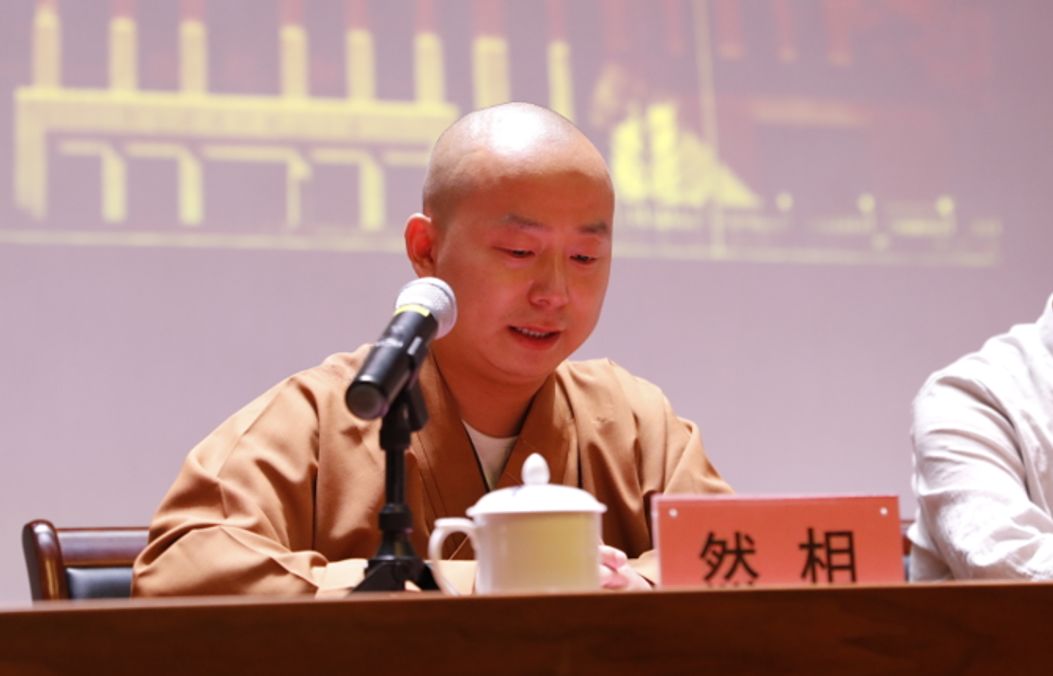 副院长然相法师主要从生源情况、课程设置、出访交流、培养模式、生活管理等几个方面做了预科班工作汇报,强调指出:“本届学僧的圆满毕业,要感谢宗教局领导和佛教协会领导的关心,院长的指导,法师、老师、同学、职工们的共同努力。感谢各位领导对我们预科部的关心和指导,感谢预科部各位法师和员工的辛勤付出,也感谢老师们、同学们的共同成就”。并在接下来的讲话中鼓励毕业学僧要为国家、为社会、为佛教、为众生努力奋斗、精进不懈,严格遵守国家法律法规和学院的各项规章制度,坚持以学僧为中心,努力使学僧德智体全面的发展,做一个新时期“爱国爱教”的合格僧人!