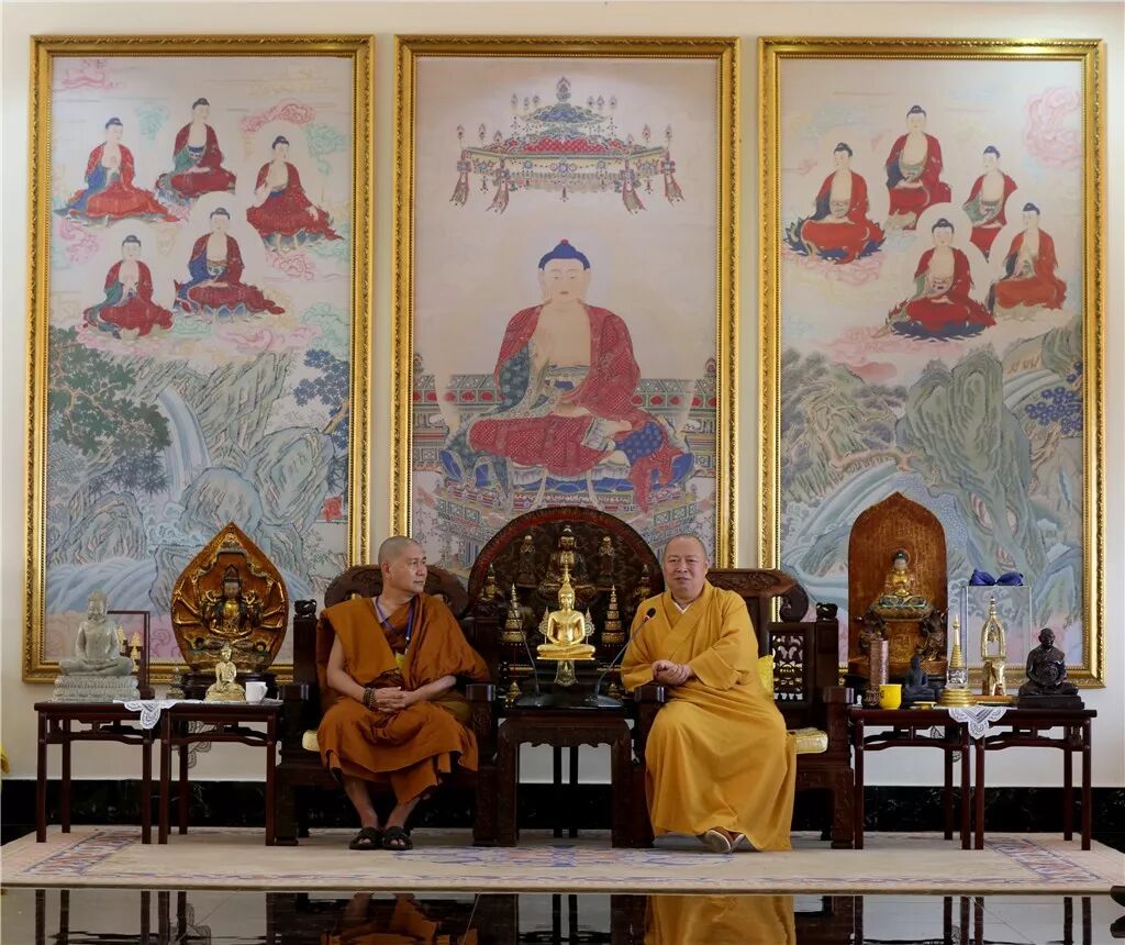 2019年6月22日,云南省南传佛教参访团一行到深圳弘法寺参访交流,中国佛教协会副会长、深圳弘法寺方丈印顺大和尚热情接待来访人员。 在参访过程中,双方就促进南传佛教与汉传佛教交流,以及加强南传佛教教职人员培养工作,进行探讨并交换意见。