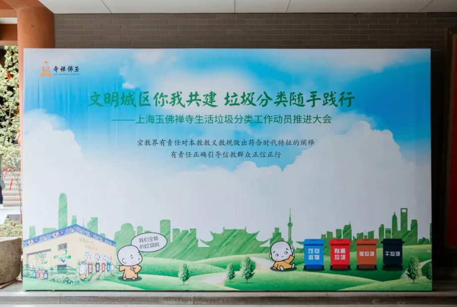 此外,为推动生态文明建设,玉佛禅寺以实际行动向全市宗教界发出倡议,希望在垃圾分类工作中积极引导信众的正信正行,将垃圾分类的理念从寺院传递给信众。