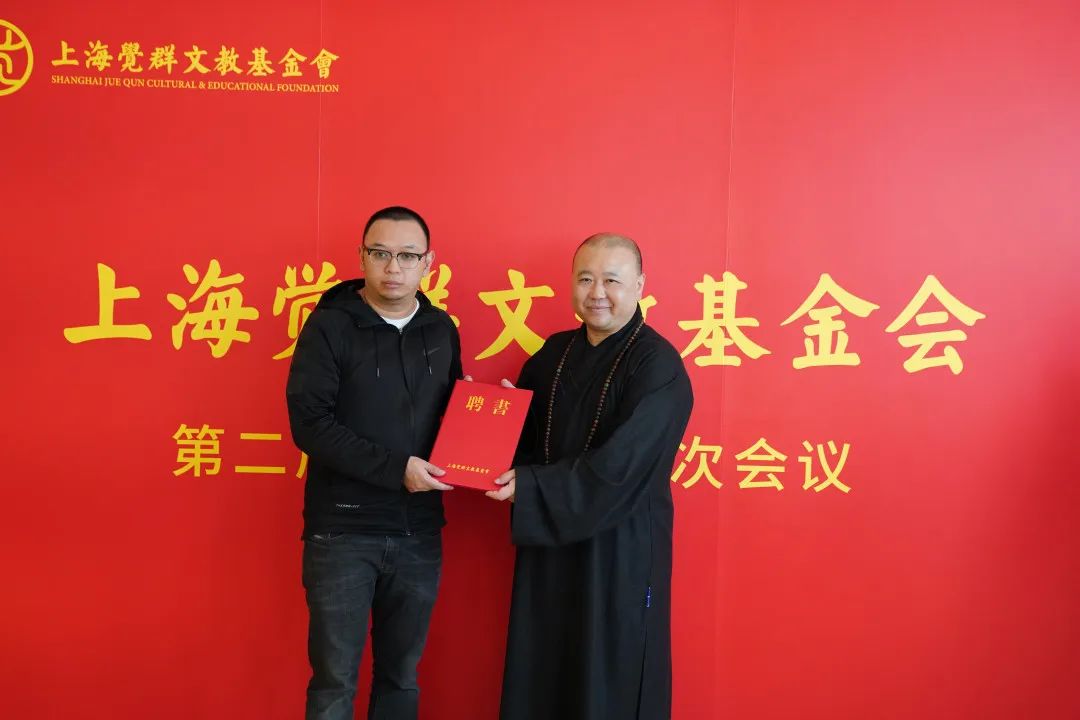 会议以无记名投票的方式选举中国佛教协会副会长、上海玉佛禅寺方丈觉醒法师为理事长,选出王文其、王祖同、沃伟东、陈星言、陈秋芳、洪根云、钱文忠为副理事长。聘请上海市第十三届人大常委会副主任胡炜为基金会名誉理事长,中国国家话剧院副院长、一级导演田沁鑫为名誉副理事长,聘请李志强律师为监事长,慧觉法师兼秘书长,并举行了简短却不失隆重的聘任仪式。