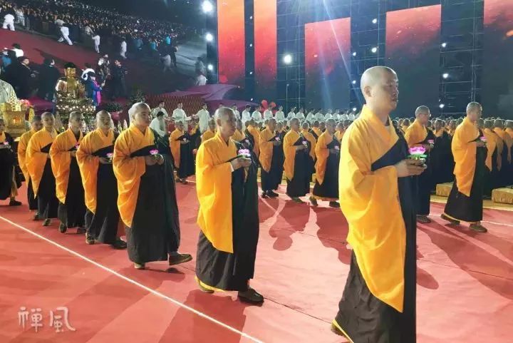 在万众祈福大典上,佛教三大语系高僧诵经祈福,万人普佛供灯,象征着佛法智慧的莲花灯从高僧大德传递至每一位虔诚的善信手中,也传递出了智慧与慈悲、喜悦与和平。