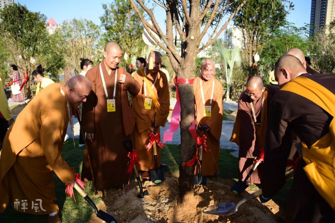 随后,现场的中外高僧及嘉宾共同种下108棵罗汉松,形成了一座由同心螺旋组成的“同愿林”。这一片“同愿林”栽种的就是表达促进文化多元交融、加强文明交流互鉴、推动世界和平发展的信愿。