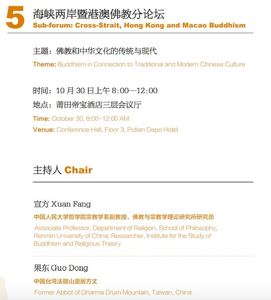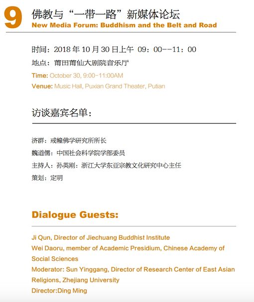 2018年10月28日至30日,第五届世界佛教论坛在福建省莆田市举办。本届论坛由中国佛教协会和中华宗教文化交流协会主办,第五届世界佛教论坛福建组委会承办,主题为“交流互鉴 中道圆融”。