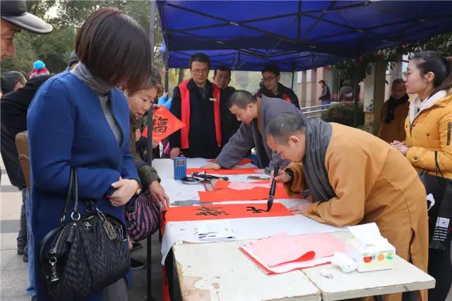 比如说,云林书院曾组织擅长书法的法师们,在新春佳节,为市民书写春联。有着深厚佛法修为的法师们亲自挥毫,春联上的字迹不仅透露出古朴的美感,更流露了来自佛教的祝福,这是佛法与书法的结合。