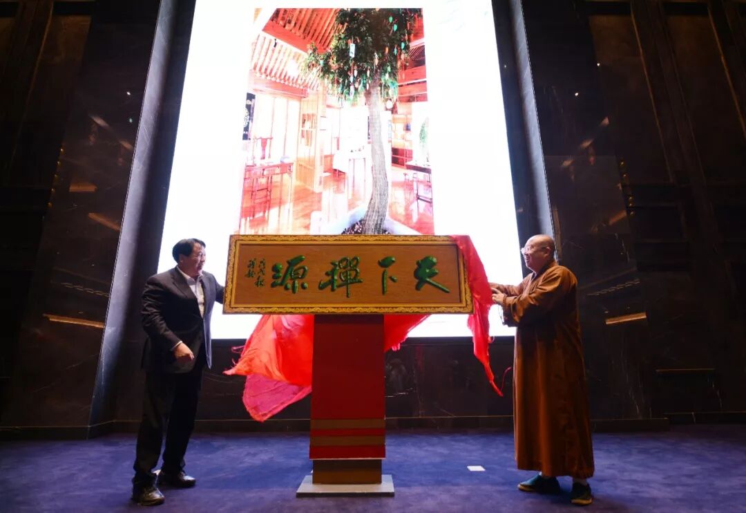 五祖寺方丈正慈大和尚与中国邮政集团公司湖北省分公司任永信总经理共同为“天下禅源”文化主题邮局揭牌。