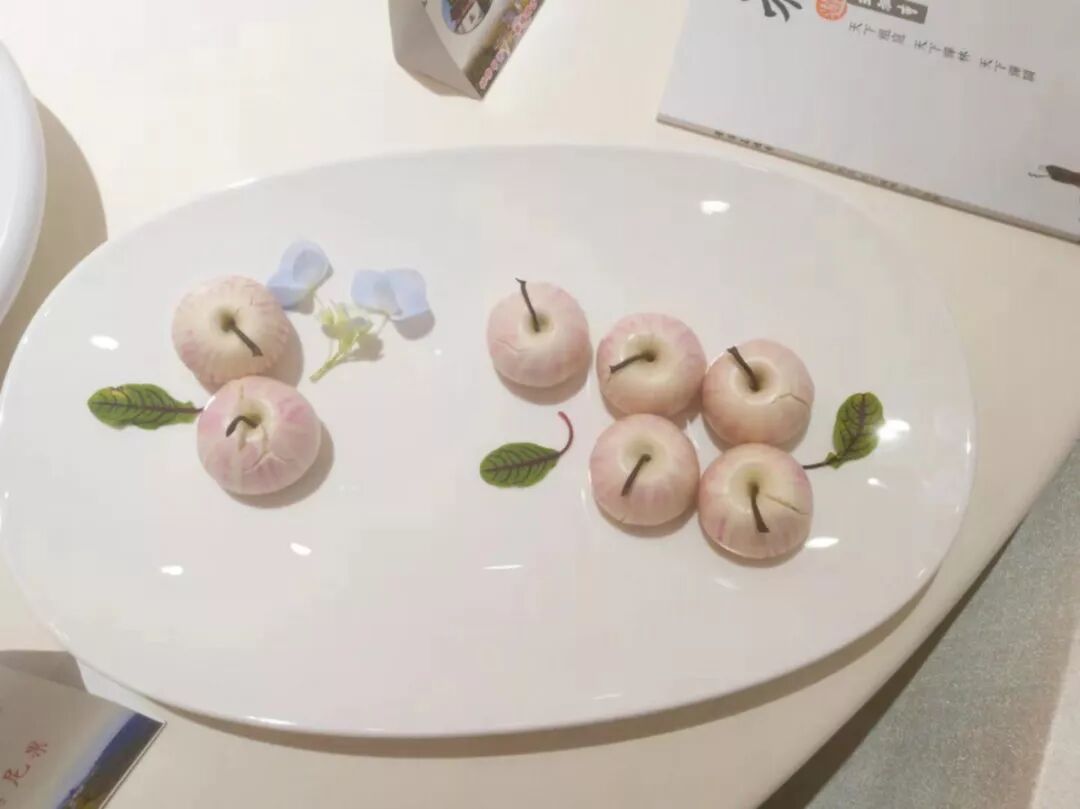 将特制的面粉和匀醒后融入面团中,光滑白亮,配以将打蓉的木瓜与火龙果,蒸好后用毛笔沾上汁水趁热刷在蒸熟的原料上。形似苹果,软糯香甜!