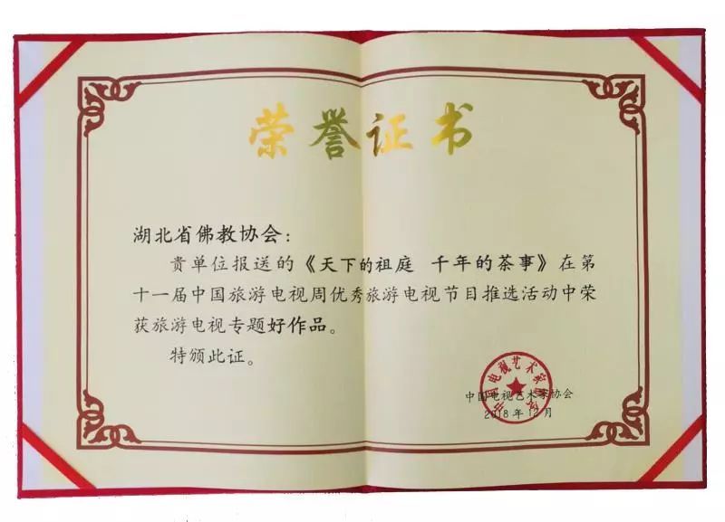 湖北五祖寺禅茶专题片荣获第11届中国旅游电视周“好作品奖”