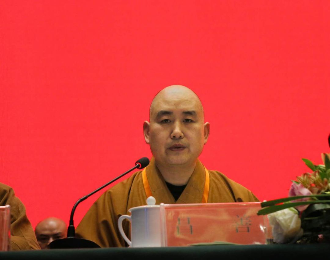 山西省佛教协会副会长、五台山佛教协会会长昌善法师作《五台山佛教协会第八届理事会工作报告》