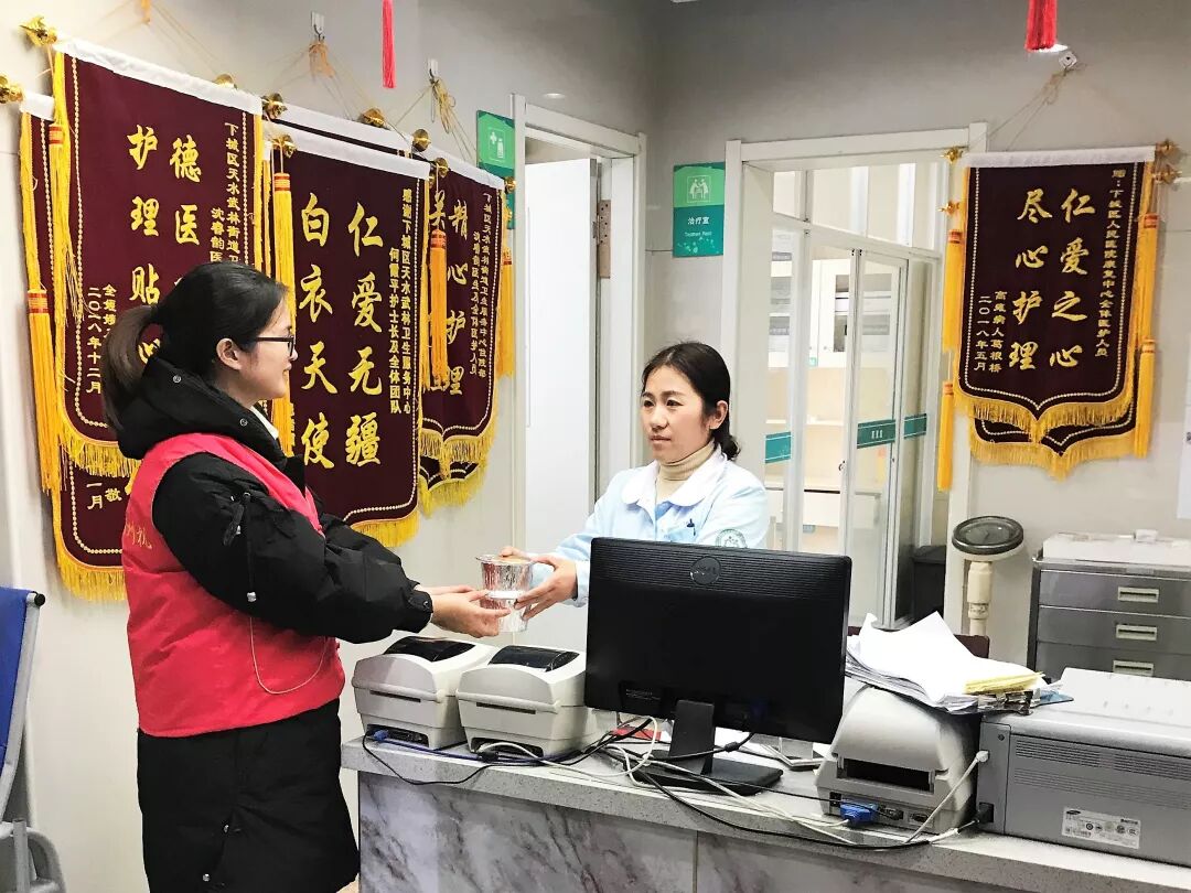 西湖街道敬老院的老人,看到身穿红背心的志愿者,赶紧迎了出来。老人接过志愿者递过来的腊八粥,笑得开心。