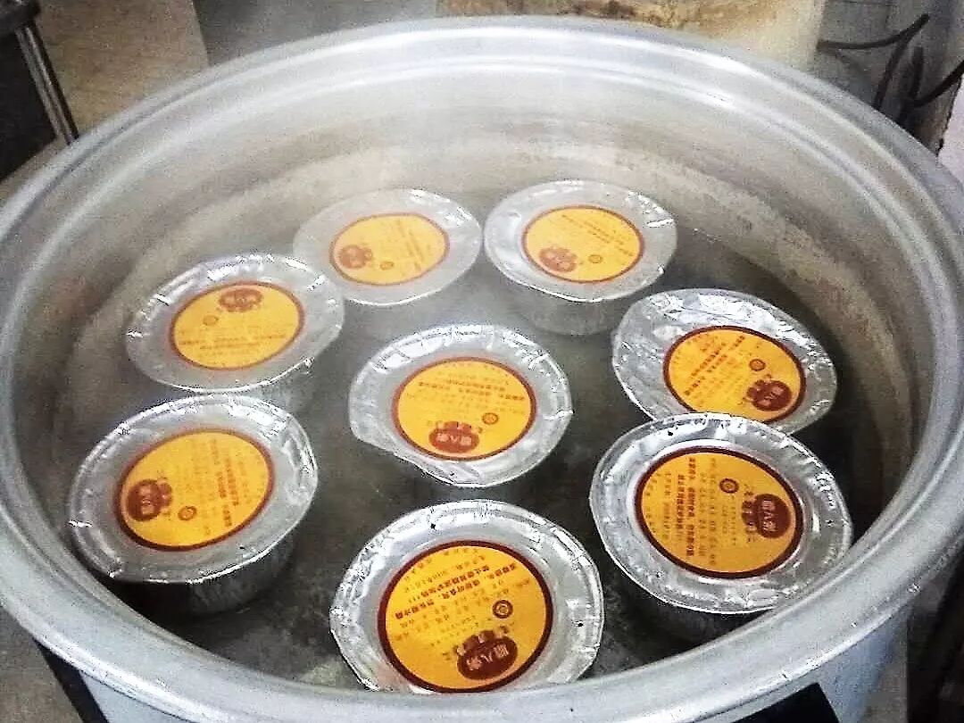 为了让老人和孩子安全吃上腊八粥,志愿者手把手教,如何用热水对腊八粥进行加热。