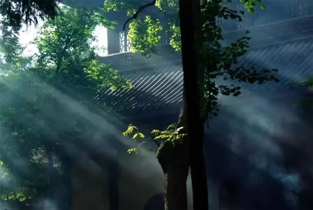 夜静了,香客、游客走了,香炉中的香还在燃着,一切白昼的喧嚣都停下来了,寺院又回到寂静的状态。