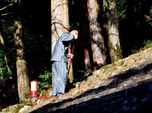 拿起很大的扫把,扫着山径中的落叶;独自望着海上冉冉升起的朝阳,思索着生命的奥秘;打开那厚重的庙门,燃起悠悠的清香,迎接着十方的善男信女;回到安静的小屋,打开千古难逢的佛典,潜心研读;收起那颗散乱的心,坐在幽静而又神秘的禅堂里,观照生命的本质……