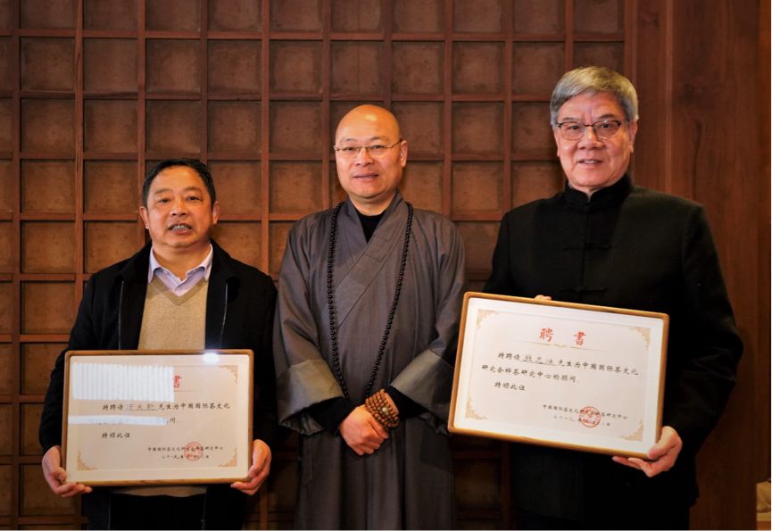 光泉法师为孙忠焕先生、何关新先生颁发聘书