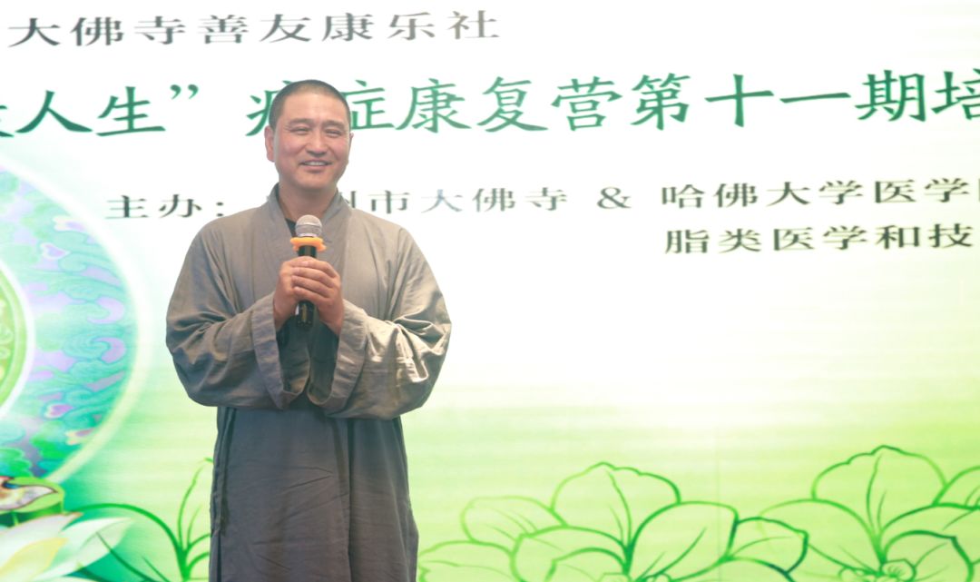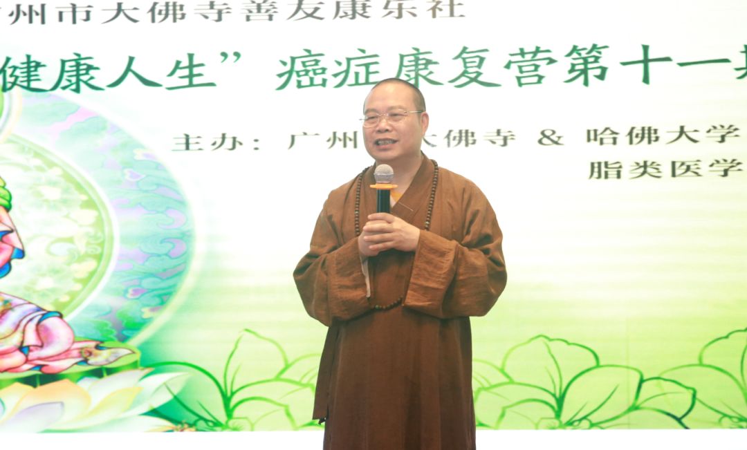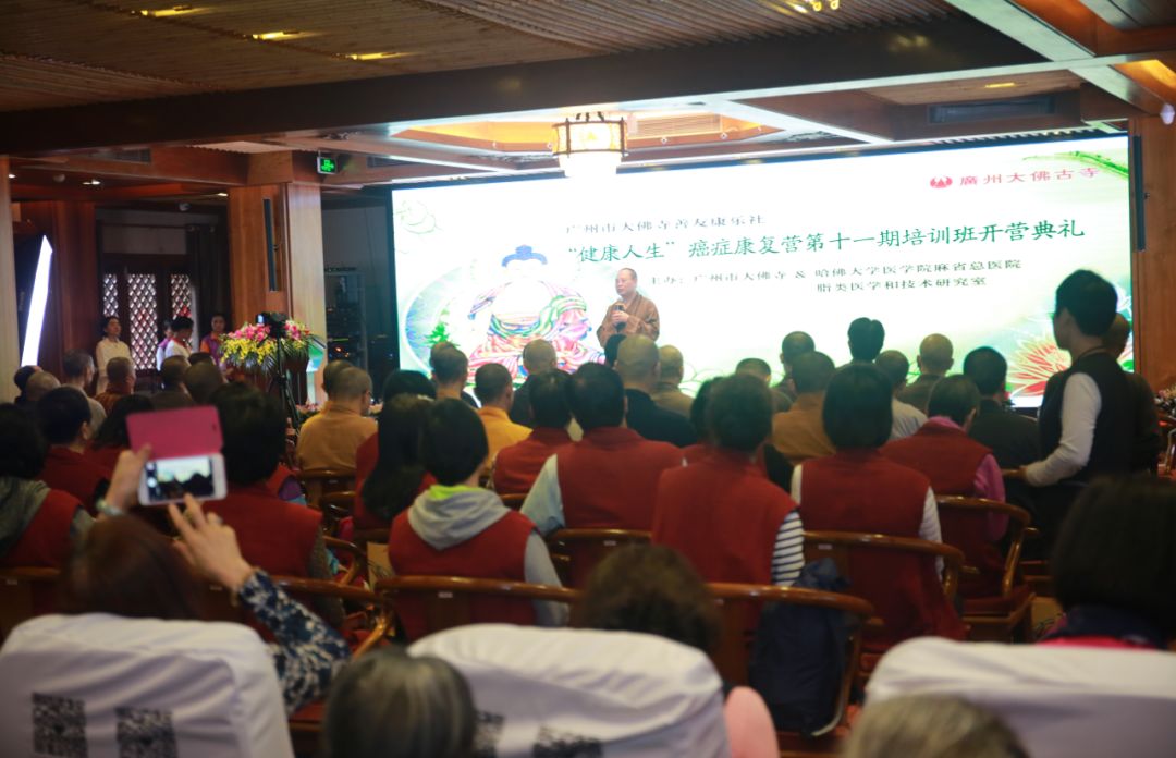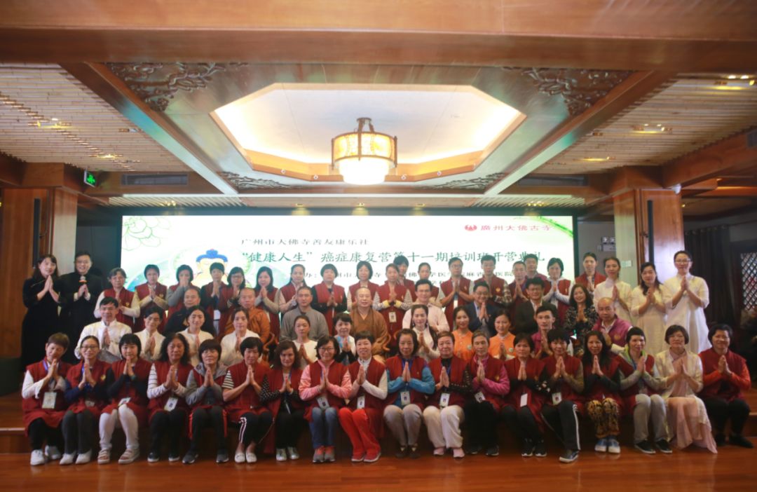 “不从自生,不从他生,不从天生,非无因缘生,从因缘而生。愿众生得知生命的真相,安住当下,离苦得乐,提高生命的质量,安享每一天。”无缘大慈同体大悲更是耀智大和尚慈悲践行之愿心,秉承着这一宗旨和理念以及大和尚的愿心召引,康乐社迎来了第十一期的开营。由2016年4月至今以来,康复营已圆满举办十期。本次“健康人生”癌症康复营既是对以往的总结提升和发展,又是一个完善课程体系的新开始,第十一期康复营在国际国内专业领域顶尖专家和学者的亲历参与,以及社会各方的热切关注和踊跃支持下盛况空前。 2019年4月13日星期六,农历三月初九,春雨富泽广州城,法喜凝聚大佛寺;由广州市大佛寺与哈佛大学医学院麻省总医院脂类医学和技术研究室联合主办的善友康乐社“健康人生”癌症康复营第十一期培训班开营典礼在大佛寺三楼大讲堂隆重举行;与会嘉宾汇集国内外专业领域顶尖科学家、专家及学者亲临现场踊跃支持。