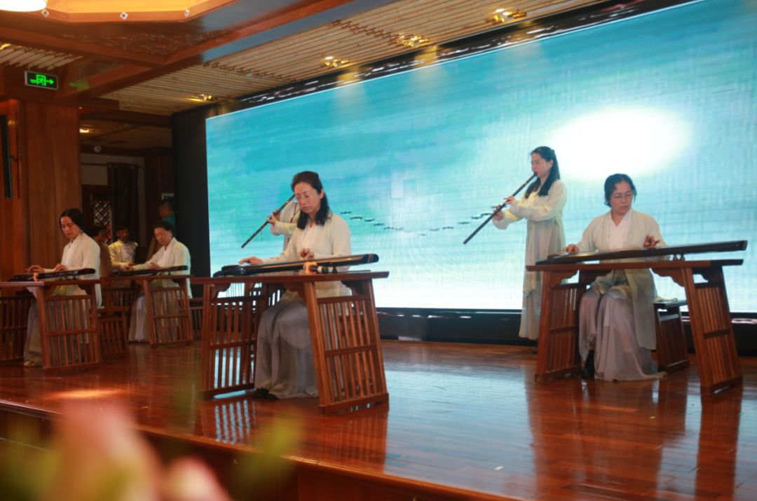 耀智大和尚的慈悲开示、专家们的至诚分享、老学员的体会感悟,伴随着大佛寺大讲堂会场此起彼伏随喜赞叹的热烈掌声,启示着新学员们和与会人员重启生命之旅发现生命之光的大愿;随后便是大佛寺艺术团、义工团队精心筹备的善友康乐社“健康人生”癌症康复营第十一期培训班开营典礼文艺表演,包括《音果空间》颂钵弹奏、普觉琴社的琴箫合奏《平沙落雁》、古筝班的《渔舟唱晚》,节目穿插小品《大佛寺义工》的风趣故事贯穿整场演出,会场不时爆发出会心欢快的笑声和热烈的掌声。